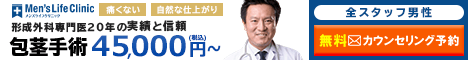 - 切る包茎手術がキャンペーン適用で55%オフの45,000円とお得